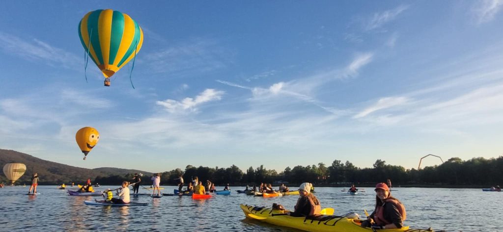 Departing Friday late afternoon, we will be venturing to our nation’s capital city by minivan. This adventure has been timed to coincide with the annual Hot Air Balloon Festival. Dependent on the launch schedule, we will enjoy an early morning paddle beneath the colourful hot-air balloons on Lake Burley Griffin, and paddle west on the lake to stop for breakfast at Cafe Sosta. Our hike will take us up the slopes of Mt Ainslie behind the War Memorial and we will also take some time in the afternoon to check out the National Arboretum